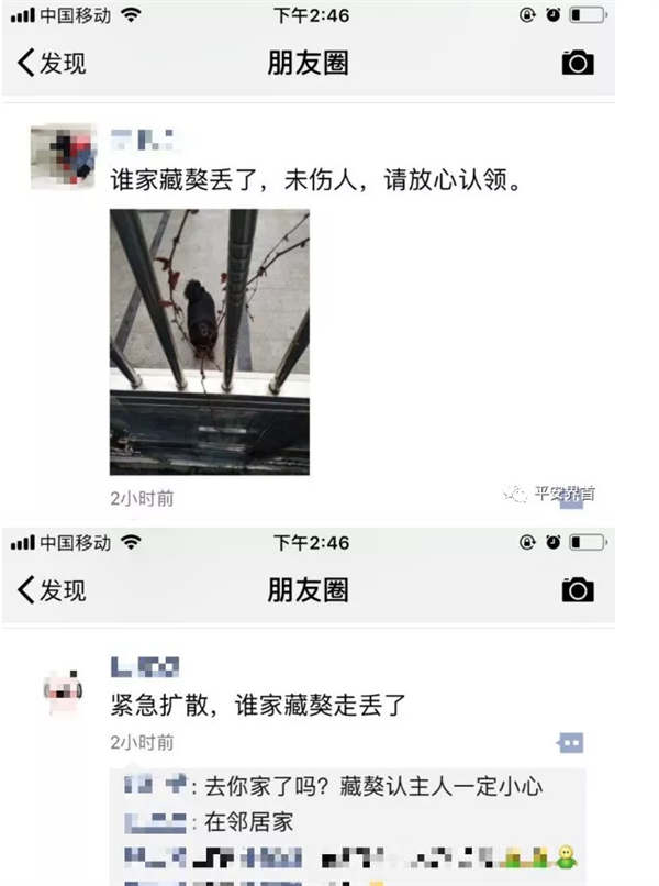 民警到达现场后,发现该藏獒全身漆黑,没有栓铁。目光凶狠,使众人不敢靠近。由于藏獒属于烈性犬,对陌生人攻击性极强,最怕它突然发疯式的攻击。于是民警一面“安抚”藏獒情绪防止其伤人,一面悄悄找来大笼子引诱藏獒入笼。同时发动群众在朋友圈寻找藏獒的主人。