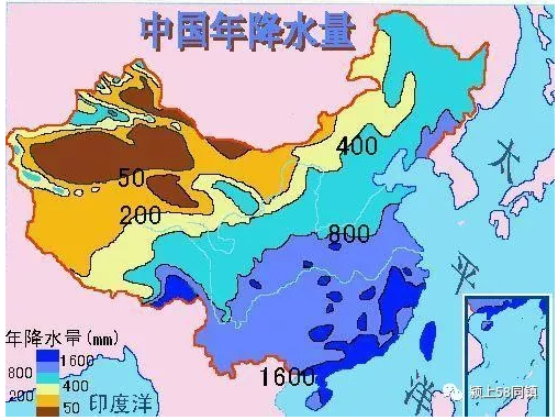 相当于中国年降水750mm等降水量线(有误,应该是800MM)---降水,决定性因素