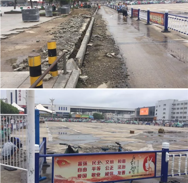 近日,不少细心的市民发现阜阳火车站站前广场正在发生变化!记者在阜阳火车站前广场看到,火车站前广场“提档升级”项目工程正在如火如荼的开展,广场地砖正在整修、停车场正在实施“白改黑”工程。 据了
