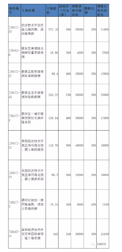 今天,阜阳市国土局再次出让颍东总干渠55号地块!上次出让信息两次信息对比,可以看到,此次保证金从5亿将到了2.5亿,减少了一半。此前国土局就发出公告,九幅地块的保证金都进行的下调!55号地块的缴款比例